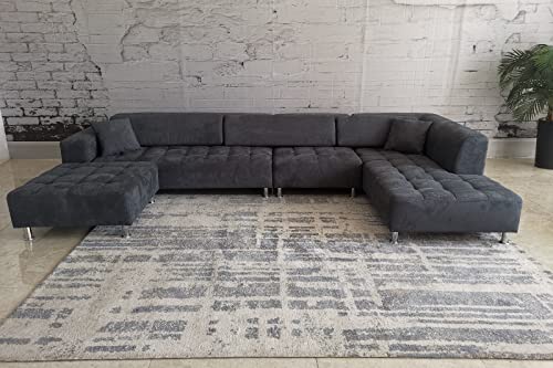The set is covered in a dark grey microfiber fabric.