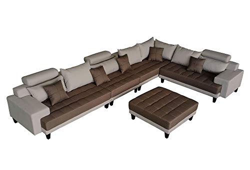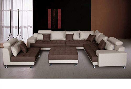 Stendmar L Shape U Shape Reversible Modern Line Fabric Sectional Couch Sofa Set S150D (S150DNE-Cream/Brown)