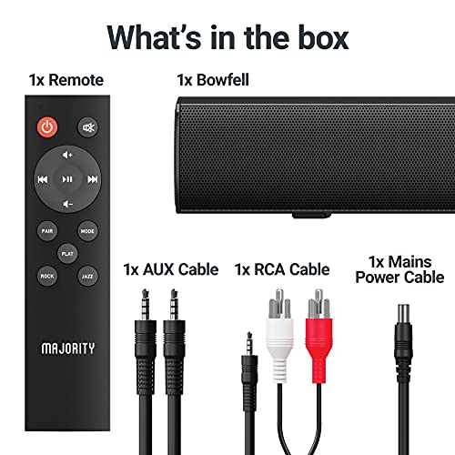 MULTI-CONNECTION: The Bowfell boasts a wide range of connectivity options including Bluetooth, USB input, Optical input (optical cable not included), RCA and an AUX port. The Bowfell comes with an RCA cable and 3.5mm AUX cable. Designed for the eager audiophile, you can select which mode you want to listen to: Music, Movies or Dialogue.